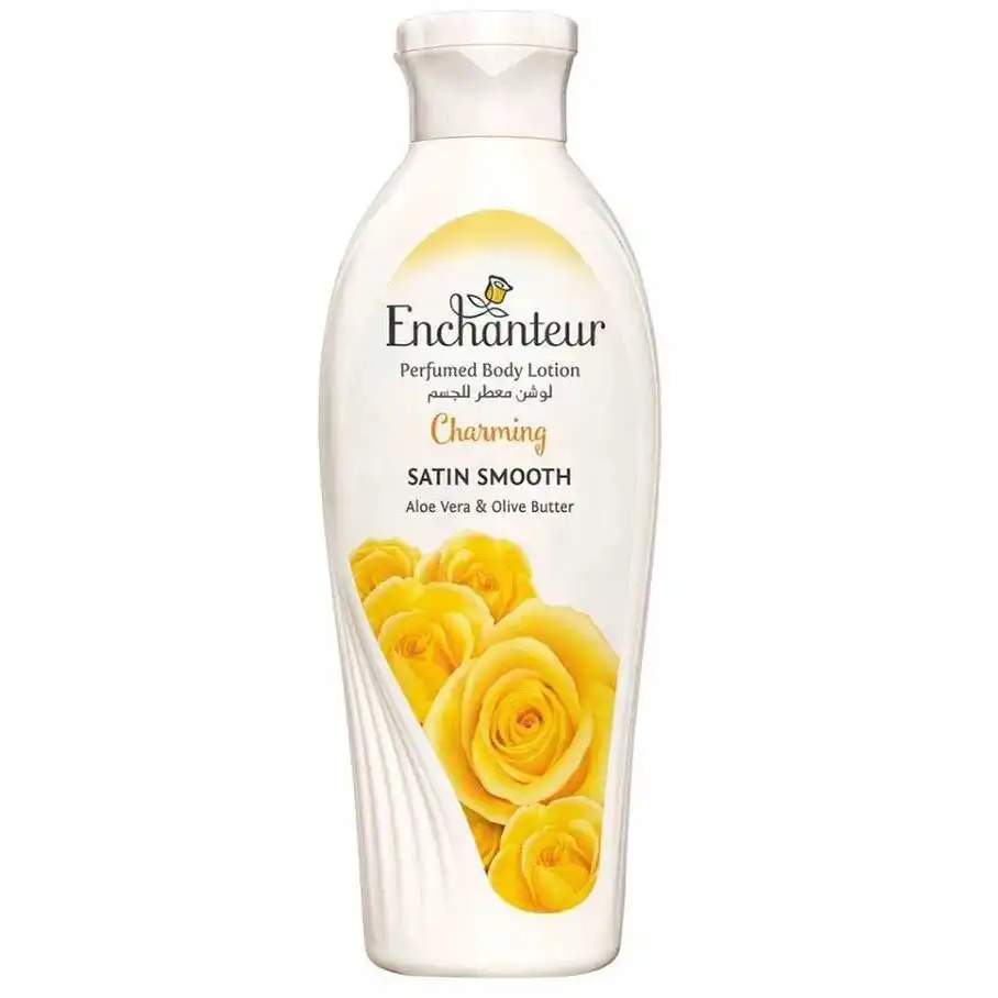 لوسیون بدن معطر Enchanteur Perfumed Body Lotion Charming Satin Smooth یک محصول محبوب در زمینه مراقبت از پوست است که به دلیل ترکیب خاصی از عطر و مواد مرطوبکننده، به پوست لطافت و نرمی میبخشد. ین لوسیون دارای عطر ملایم و دلپذیری است که حس تازگی و طراوت را به ارمغان میآورد.
