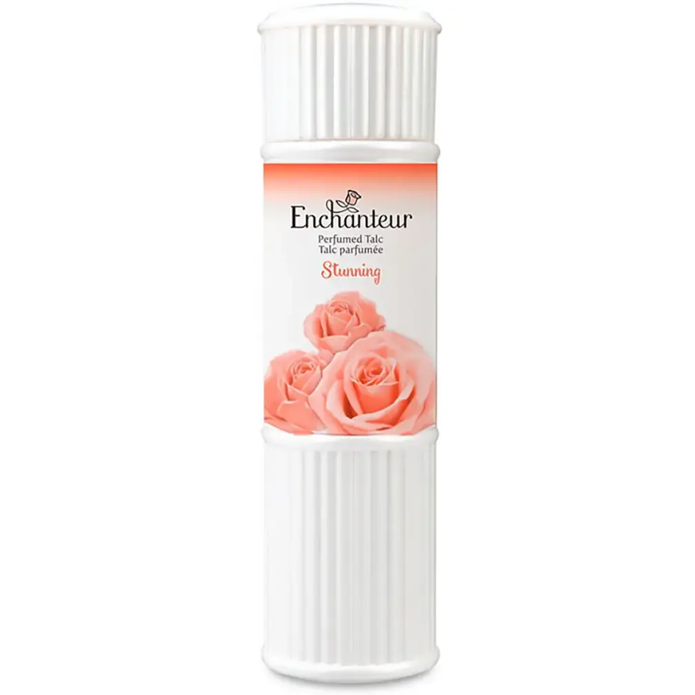 بررسی ، مشاهده قیمت و خرید پودر خوشبو کننده بدن انشانتر استانینگ با رایحه گل رز 125 گرمی Enchanteur Stunning