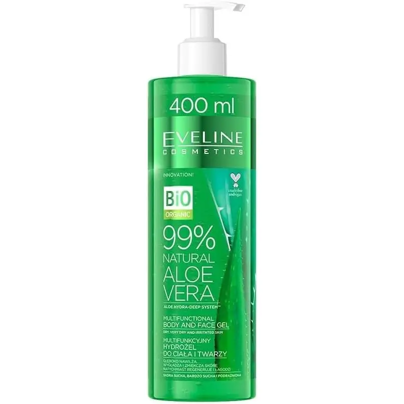 بررسی ، مشاهده قیمت و خرید لوسیون (ژل) آلوئه ورا چند منظوره اولاین 400 میل Eveline Cosmetics 99% Natural Aloe Gel for Face & Body