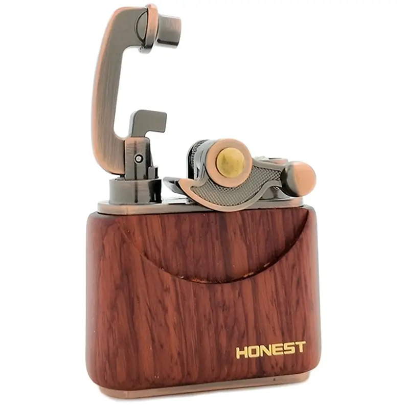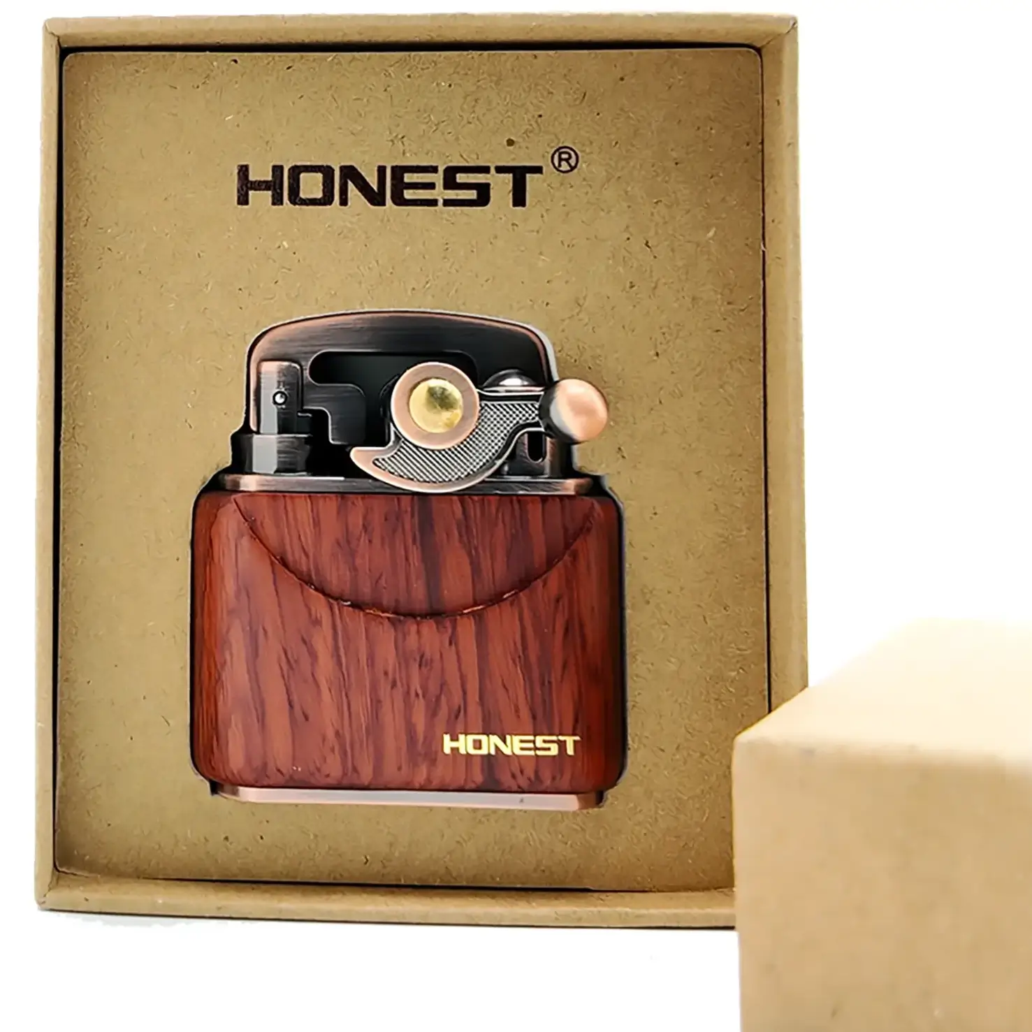 فندک بنزینی هانست اصل Honest مدل LIHN-1716 | فندک کلاسیک ضد باد با بدنه فلزی و روکش طرح چوب