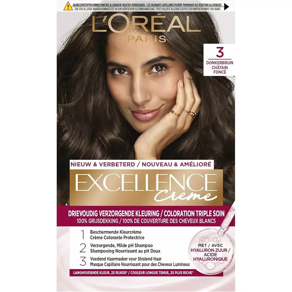 بهترین قیمت کیت رنگ مو لورآل اکسلنس کرم ۳ قهوه ای تیره طبیعی