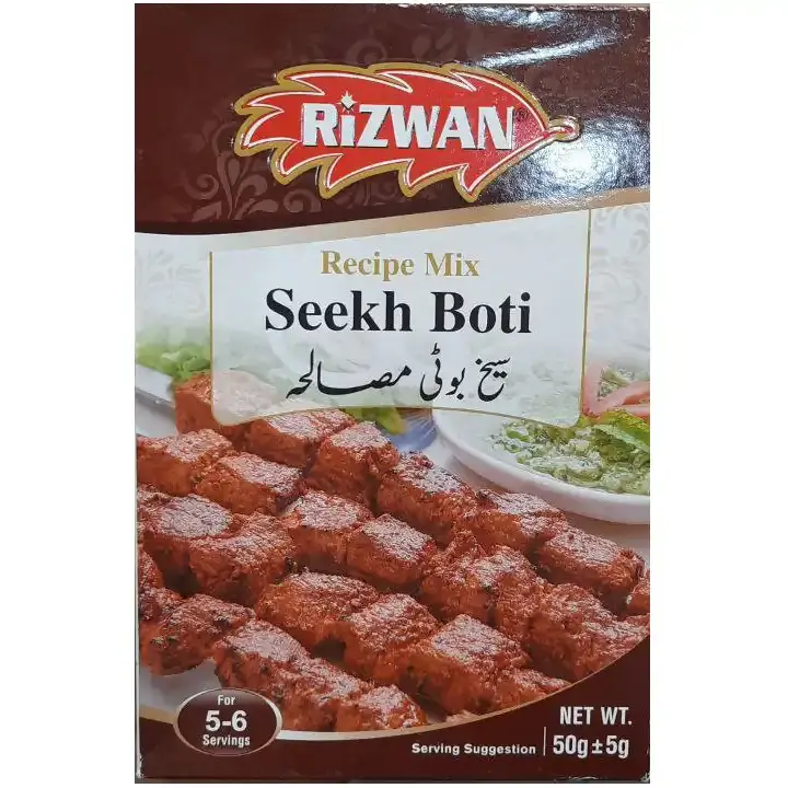 بررسی ، مشاهده قیمت و خرید ادویه مخلوط ریزوان مخصوص کباب کوبیده 55 گرمی Rizwan Recipe Mix Seekh Boti