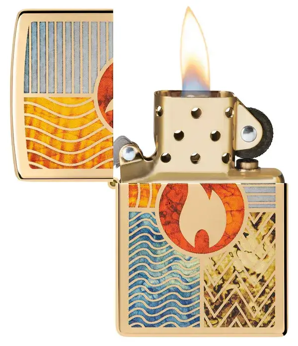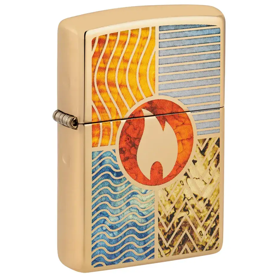 فندک زیپو (Zippo) اصل مدل ۴۸۷۲۹ High Polish Brass طرح Elements of Earth – گارانتی مادامالعمر